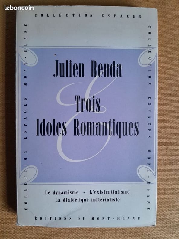 Editions du Mont-Blanc" Collection Espaces" 1948, in-12 broché, 178 p. (papier un peu bruni, sinon bon état) Le très intellectualiste auteur de La Trahison des Clercs pourfend ici les attitudes qui font de l'action le bien suprême au détriment de la pensée...