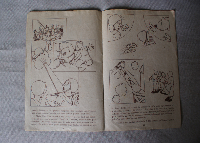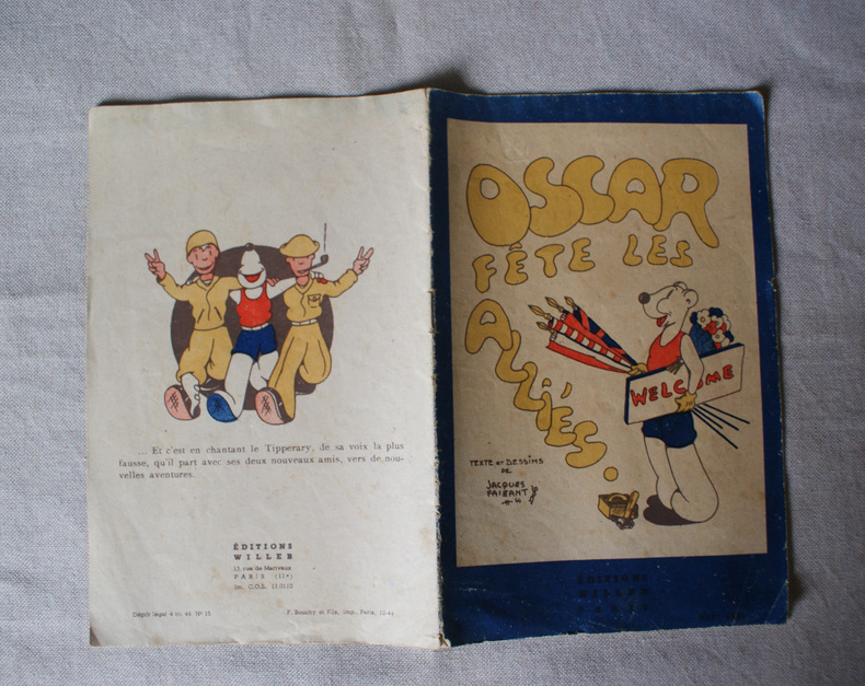 Paris, Éditions Willeb, 1944, in-8 (13,5x20,8cm), agrafé, dessins N/B et coul., 15 p. Petite brochure de "propagande" de guerre au moment où les Alliés ont déjà reconquis Paris et s'apprêtent à libérer intégraement la France (le dépôt légal est du 4e trimestre 1944 ; l'impression d'octobre 1944). Jacques Faizant était alors au début de sa carrière et peu connu. Peu courant.