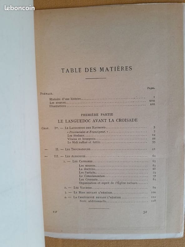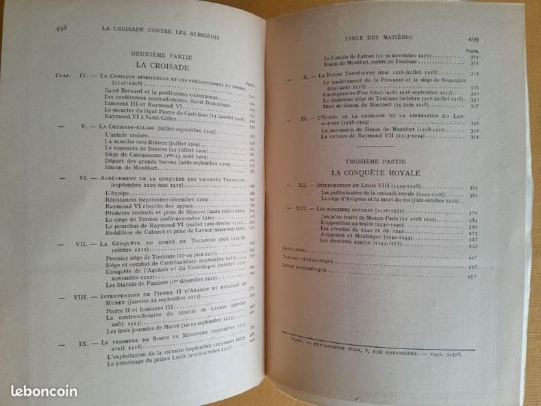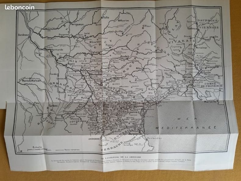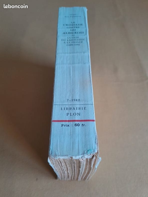 Plon. 1942. In-8. Broché. Etat d'usage, Couv. convenable, Coiffe en pied abîmée, Intérieur frais. 492p, illustré d'une carte rempliée noir et blanc du Languedoc de la croisade, rousseurs sur le dos et légères rousseurs sur les plats.. . . . Classification Dewey : 944.02-Histoire de France de 987 à 1589
