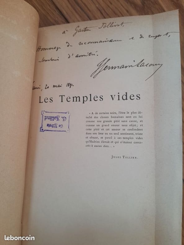 Paris, Alphonse Lemerre, 1891, in-12, relié, 191 p. Édition originale avec envoi autographe de l'auteur en page de faux-titre à Gaston Jollivet (1842-1927) journaliste, écrivain et dramaturge français qui, peu de temps avant sa mort, avait donné un intéressant volume de souvenirs, préfacé par Paul Bourget, où il évoquait la société parisienne de 1860 à 1870, les comédiens, les journalistes, les « boulevardiers » du Café Anglais et de la Maison Dorée.Menus frottements au dos et en coiffes, présence de l'ex-libris de Gaston Jollivet en page de faux-titre, papier légèrement bruni, agréable exemplaire.