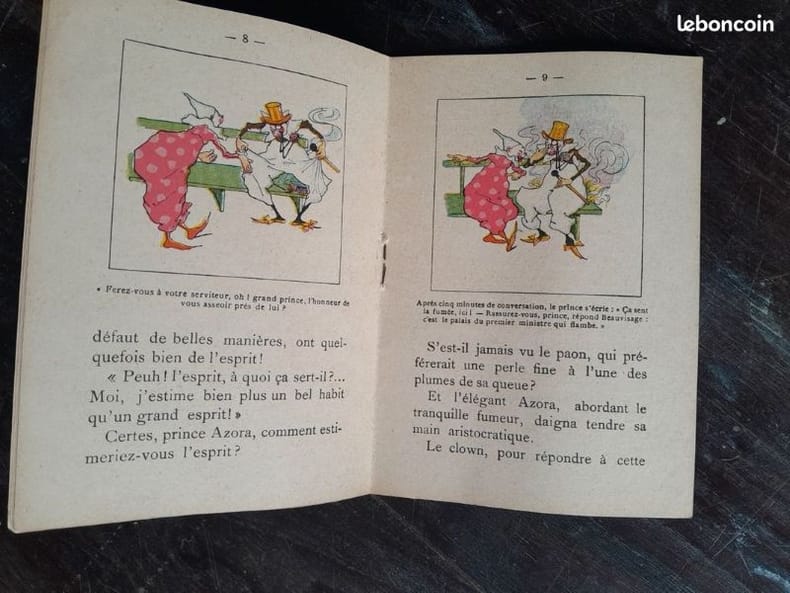 (Histoire de clowns). Hachette. Bibliothèque des Ecoles et des Familles. Série Papillon. (1929). In-12 (108 x 158mm) cartonnage rouge imprimé et orné en noir, de l'éditeur, couvertures illustrées couleurs conservées, 15 pages, 6 illustrations couleurs à mi-page. Bords de feuilles un peu jaunis sinon bel exemplaire.