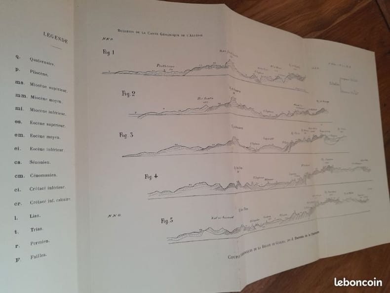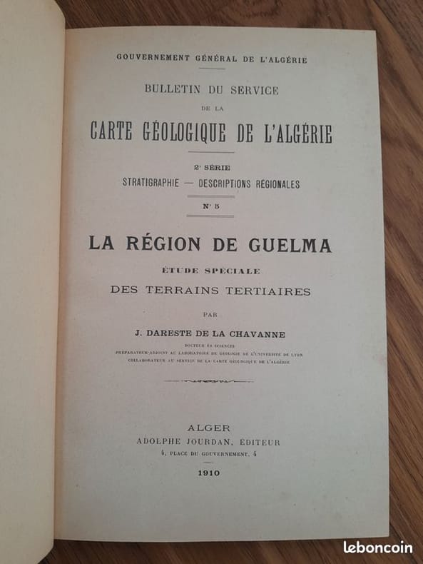 Alger, Adolphe Jourdan, 1910, Gouvernement général de l'Algérie, Bulletin du service de la carte géologique de l'Algérie, 2e série, stratigraphie - descriptions régionales, n°5, in-8, reliure demi-maroquin, 268 pages, 5 planches hors-texte.