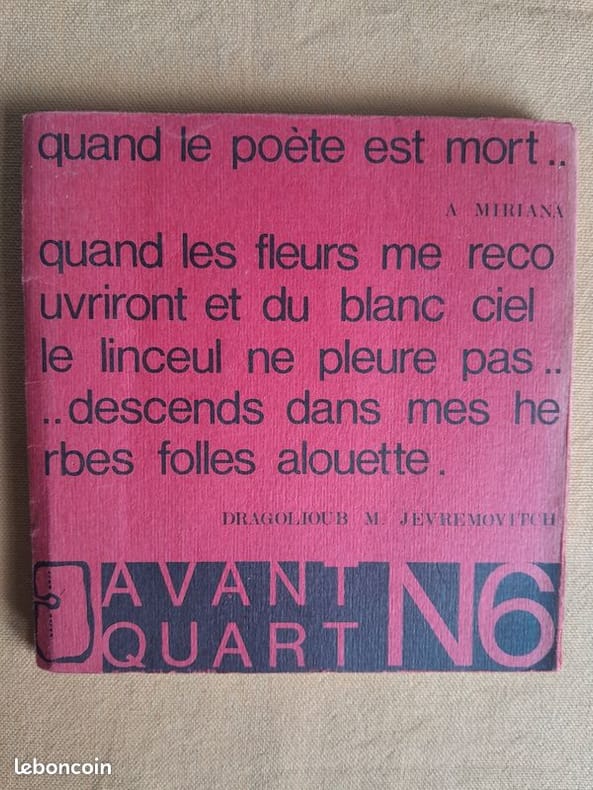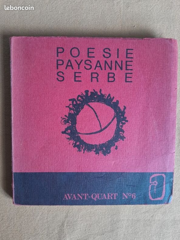 Avant-Quart n° 6 Poésie paysanne serbe Traduit par Stevo Solaja et Françoise Han. In-12 broché (14,5 x 14,5 cm), non paginé, mention de 2e édition sur papier azuré, dessins et photographies hors-texte.- 130g. Très bon état.