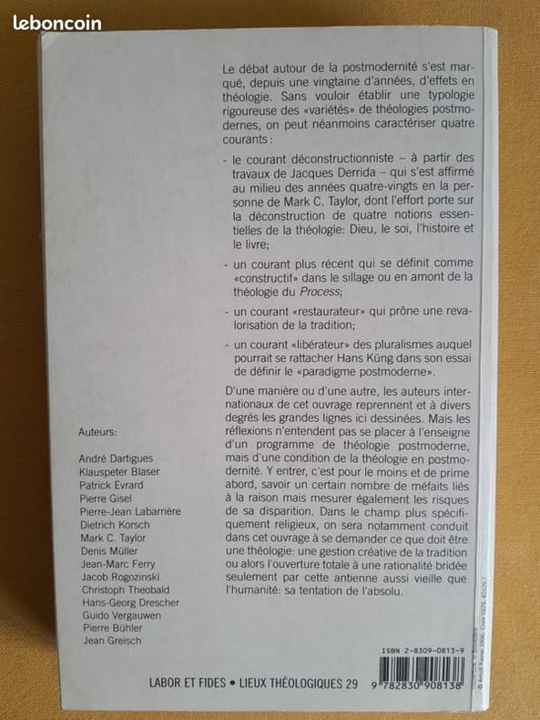 Genève, Labor et Fides, collection "Lieux Theologiques" n°29, 1996, in-8, br., 490 p. Bon état.