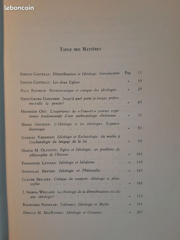 Paris, Aubier, 1973, in-8, br., 526 pp. 526 pp. 37 contributions parmi lesquelles, celles de Paul Ricoeur, H. G. Gadamer, H. Gouhier, Emmanuel Levinas, Stanislas Breton, A. de Waelhens, Jacques Ellul, Francesco Dal Pozzo.