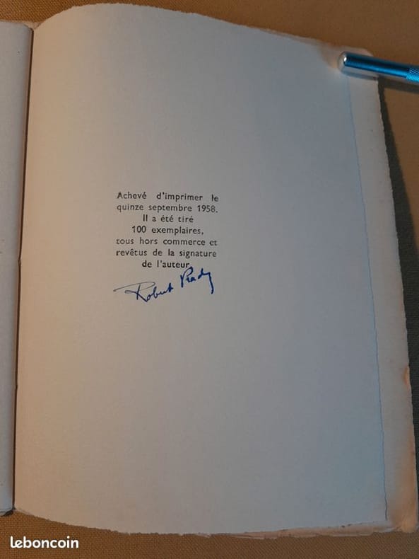 Auto-édition, 1958, in-8° cousu, 21 pages, édition originale, l'un des 100 exemplaires hors-commerces et signés par l'auteur, envoi de l'auteur au poète Jean Vagne.