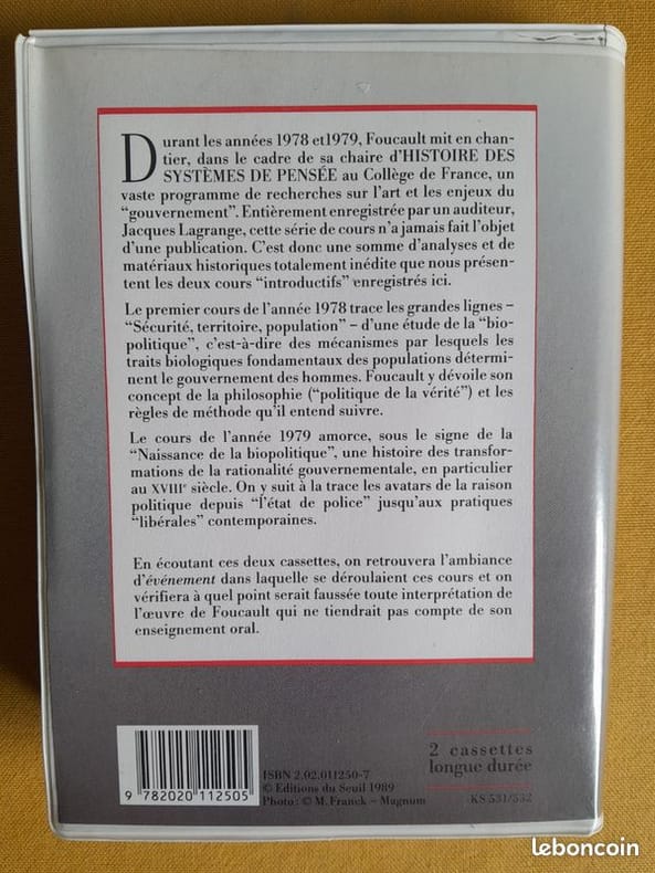 Paris, Seuil, 1989, 2 K7 audio dans coffret à deux volets, jaquette.