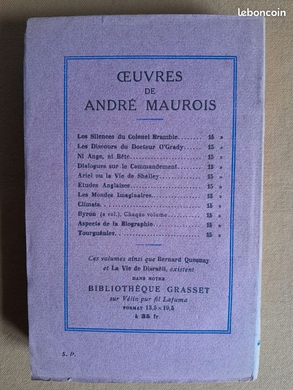 Gallimard 1961 in8. 1961. Cartonné. Romans : Climats. Bernard Quesnay. Le cercle de famille. L'instinct du bonheur. Terre promise. Les roses de septembre. Les silences du Colonel Bramble. Les discours du Docteur O'Grady. Nouveaux discours du Docteur O'Grady /// Illustrations en couleurs