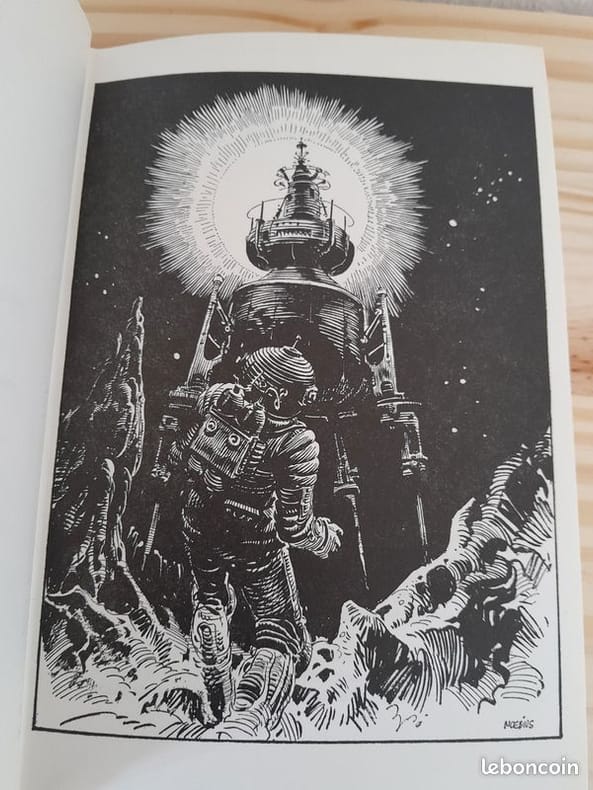 Paris Editions Opta 1970 in 8 (20x13,5) 1 volume reliure toilée de l'éditeur, dos titré, plat supérieur orné d'une comète dorée, 359 pages [1], rhodoïd. Ouvrage illustré des dessins originaux de Moebius. Collection du Club du Livre d'Anticipation, N°25. Exemplaire numéroté sur papier offset des papeteries V.R.G. Bon exemplaire