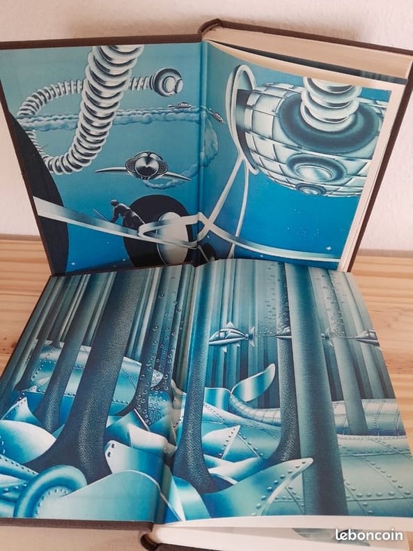 Paris, Éditions OPTA, coll. Club du livre d'anticipation n°58 & 59, 1975, 2 vols. in-8, cartonnage éditeur, pleine toile marron au premier plat décoré par une comète dorée, rhodoïd, signet, 427-411 pp. Illustrations intérieures de Pierre Clément ; traduction de Françoise Maillet. Tirage limité à 5000 exemplaires numérotés de 1 à 5000 (ceux-ci justifiés n°2511-2641) et à 120 exemplaires hors-commerce de collaborateurs marqués H.C.