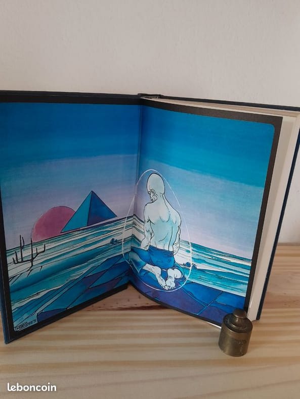 1976 Nouvelles éditions Opta, Collection "Livres d'Anticipation" N°61 - 1976 - In-8, reliure toilé bleu avec décor argenté (comète) sur le premier plat, sous jaquette rhodoïd, signet - 435 p. - Illustré de dessin originaux de Moro - Edition à tirage limité de 5000 exemplaires numérotés de 1 à 5000, ainsi que 120 exemplaires de collaborateurs notés HC - Exemplaire numéroté 418/5000