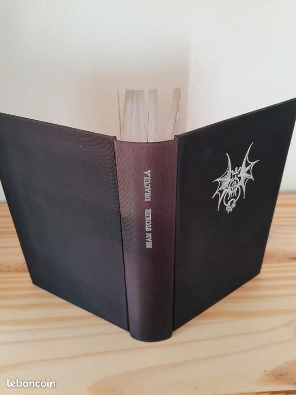 Paris, Éditions OPTA, coll. Aventures fantastiques n°2, 1968, in-8, cartonnage éditeur, pleine soie noire ornée du monogramme argenté de Dracula, tête argentée, sous rhodoïd, signet, XVIII-408 pp. Illustration de Philippe Druillet ; introduction de Tony Faivre. Tirage limité à 3700 exemplaires numérotés de 1 à 3700 (celui-ci justifié n°851) et à 150 exemplaires hors-commerce de collaborateurs marqués H.C.