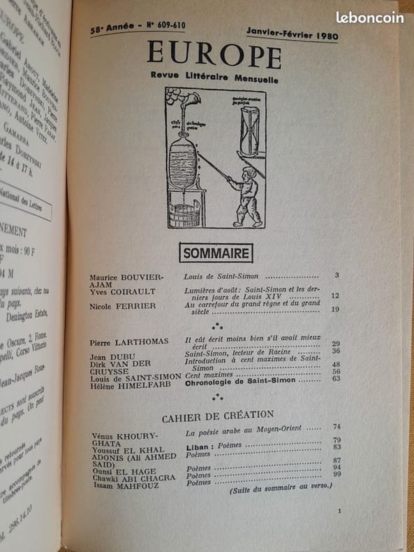 Paris, revue Europe, janvier-février 1980, n°609-610, in-8, br., 249 p.