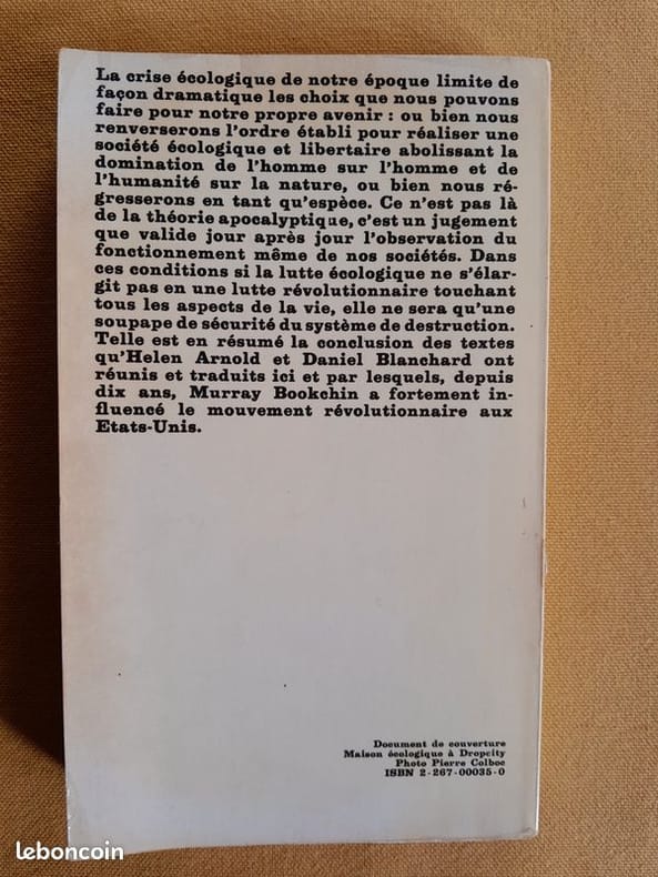 Collection Christian Bourgeois Poche n°11 - Traduit de l'américain par Helen Arnold et Daniel Blanchard. Classification Dewey : 577-Ecologie