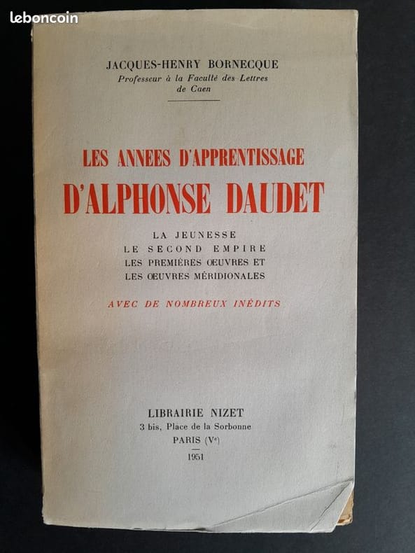 Tiré d'une thèse de doctorat ce travail est consacré à la jeunesse d'Alphonse Daudet. "Sans une vue exacte de cette jeunesse et de ses tentatives, le reste de la vie et de l'œuvre ne se peuvent bien comprendre". Voir sommaire sur photos jointes