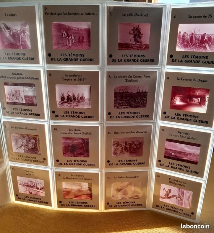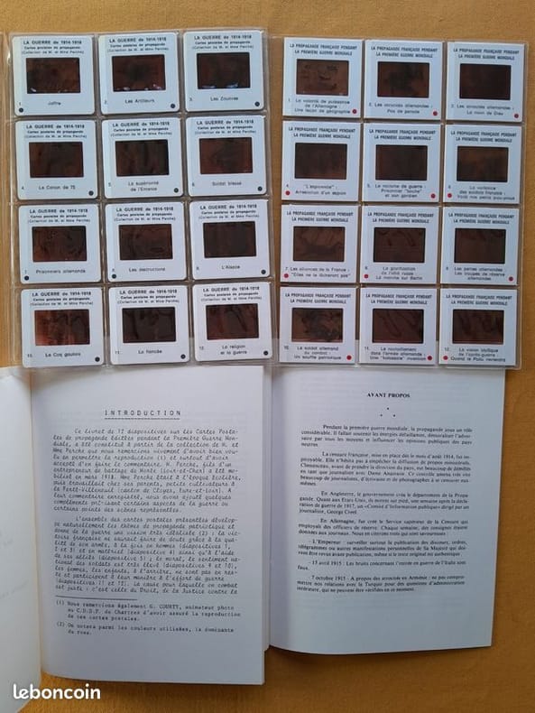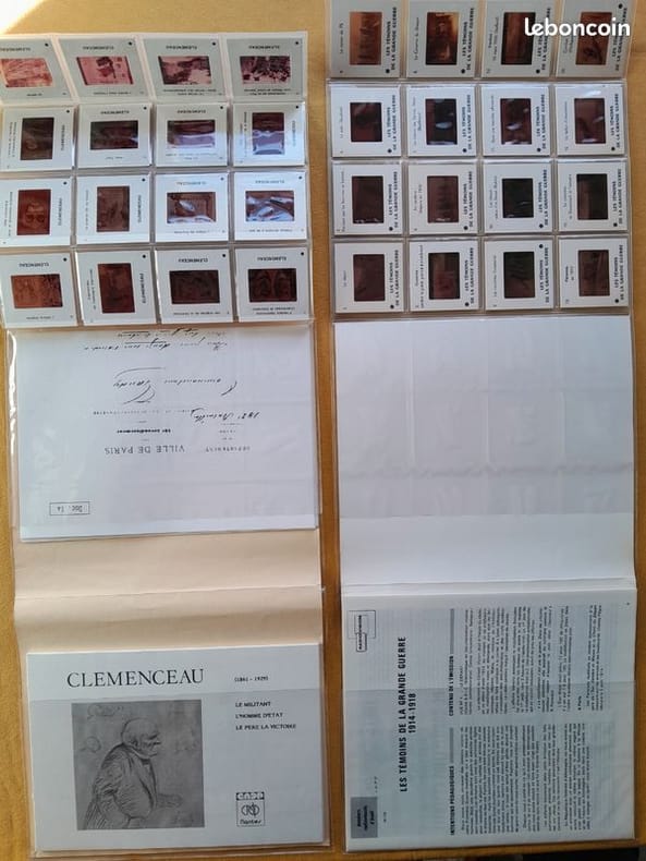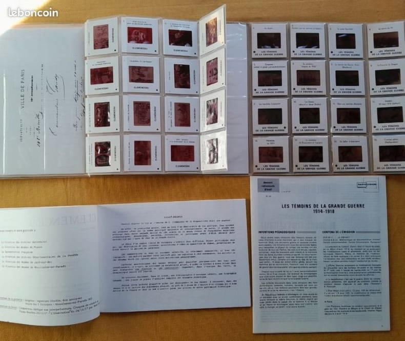Roger-Alexis Combet : Les témoins de la Grande guerre, 1974, 24 pp., 16 diapos.M. Boulard : Clémenceau (1841-1929), 1979, 48 pp., 8 ff. d'archives fac-similées, 16 diapos.Jean-Claude Farcy, La guerre de 14-18. Cartes postales de propagande commentés par des témoins de la guerre. Collection de M. et Mme Perche, 1981, 32 pp., 12 diapos.Claude Croubois & Claude Morin : La propagande française pendant la Première guerre mondiale, 1982, 16 pp., 12 diapos.Daniel Oster : La guerre 14-18 vue par les artistes, 1986, 26 pp., 12 diapos.
