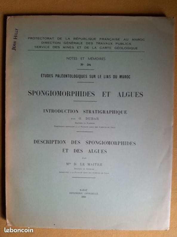 Rabat, Imprimerie Officielle, 1935, in-4, br., 58 p.-10 f. de pl., ill., carte dépl. Collection : Notes et mémoires / Protectorat de la République française au Maroc. Direction générale des travaux publics. Service des mines et de la carte géologique ; 34.