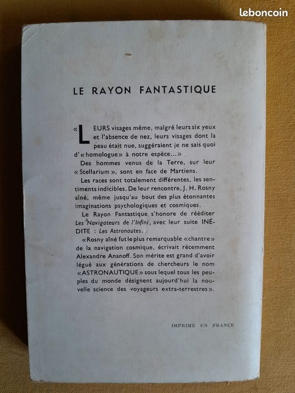 Editions La Nouvelle Revue Critique / Collection " Les Maîtres du Roman " n° 32 de 1927. In-12 broché de 220 pages au format 19 x 12 cm. Couverture avec titre imprimé. Dos resté carré. Plats et intérieur frais, malgré 3 petites traces en couverture. Ce récit raconte les aventures de trois astronautes français sur la planète Mars et leur rencontre avec différentes formes de vie. Une suite de ce roman fut annoncée dès 1925, mais ne fut publiée qu'à titre posthume en 1960 sous le titre Les Astronautes. Ce roman est un classique de la Science-Fiction et pour de nombreux critiques le chef-d'œuvre de l'auteur. Très bel état de fraicheur. Edition originale en livre après la parution en 1925 chez Fayard, dans Les Œuvres Libres n° 54.