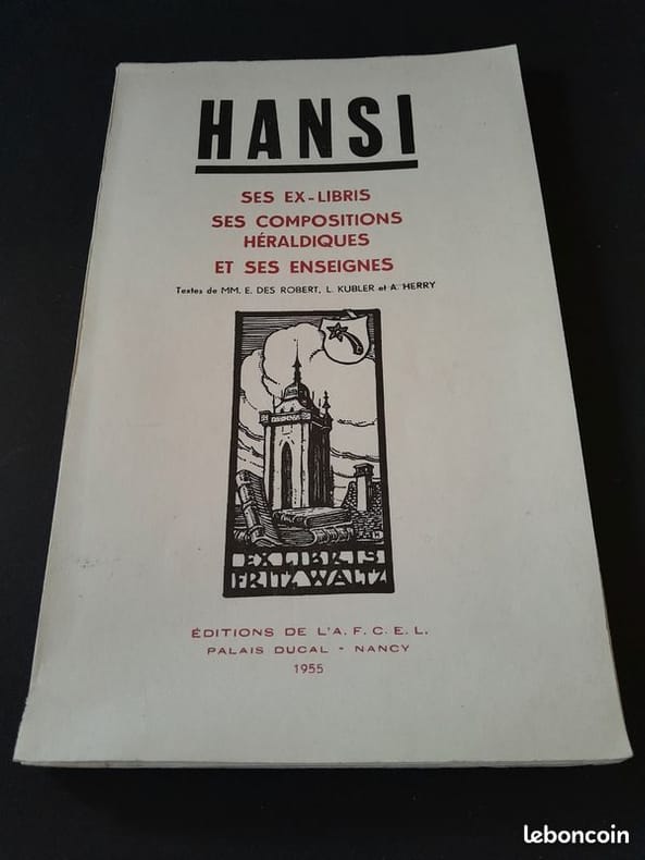 Nancy, A.F.C.E.L., 1955, in-8vo, 76 p., 35 fig. (portrait de Hansi et 1 en couleurs), ex. non coupé, brochure originale illustrée.