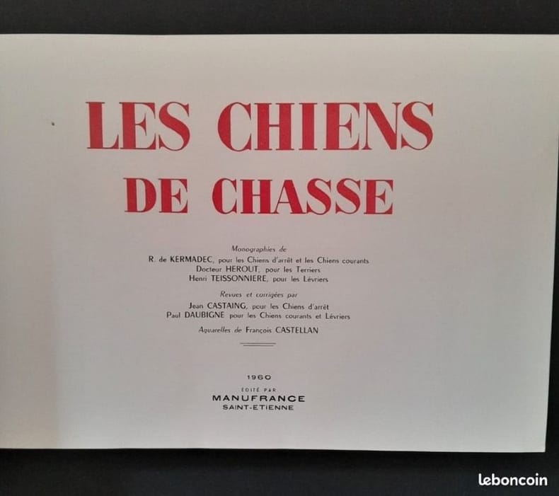 Les monographies ont été rédigées par R. de Kermadec pour les chiens d'arrêt et les chiens courants, Dr Hérout pour les terriers, Henri Teissonnière pour les lévriers ; revues et corrigées par Jean Castaing pour les chiens d'arrêt et Paul Daubigné pour les chiens courants et lévriers. Les aquarelles sont de François Castellan.