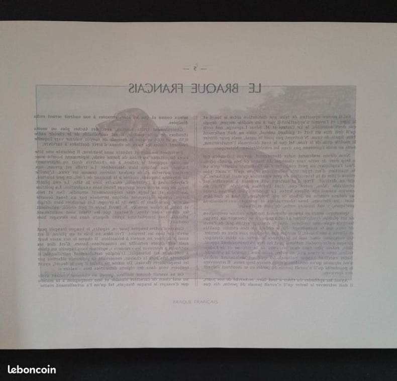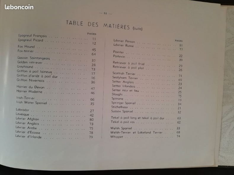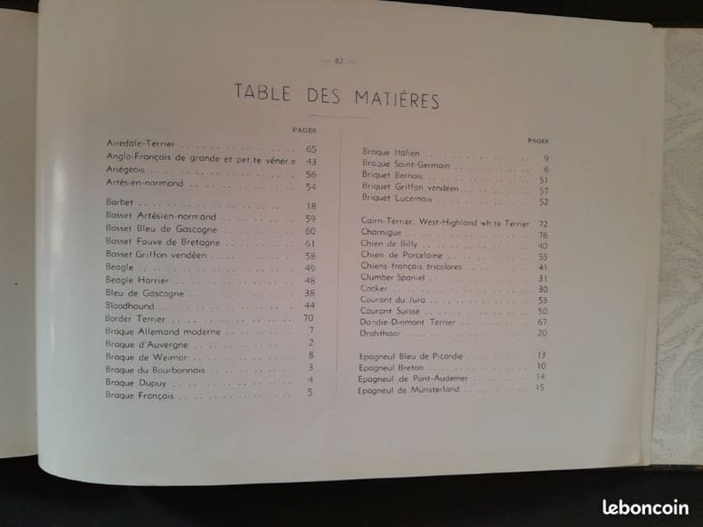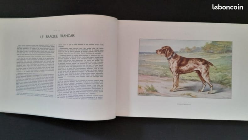 16 planches hors-texte de photographies en noir et blanc de chiens de chasse (complet), quelques figures dans le texte 1ere édition, 1947 Contents, Chapitres : Avant-propos de V. Mairesse - Historique du chien de chasse - Anatomie du chien - Classement des races - Les chiens d'arrêt (Braques - Epagneuls - Spaniels de chasse à tir - Griffons) - Les chiens courants - Chiens de chasse à utilisation spéciale (Levriers - Retrievers - Terriers) - Le dressage - Elevage et sélection - Sociétés canines, concours de beauté - Liste des principaux clubs de chiens de chasse couverture à peine jaunie, avec une petite déchirure sur le bord gauche du plat supérieur et le dos (au centre, sans gravité ni manque), intérieur propre, papier à peine jauni, 3 lignes soulignées sur les dernières pages, une note à l'encre, cela reste un bon exemplaire, bien complet des 16 planches hors-texte