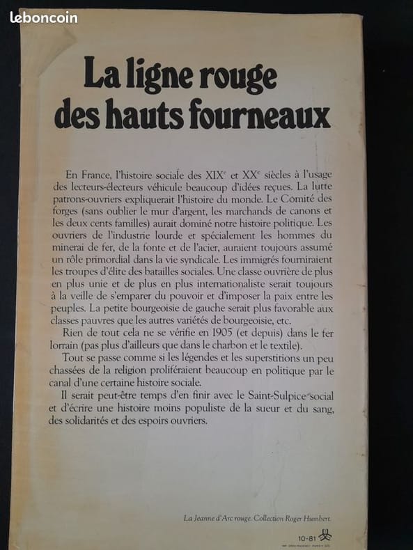 Paris, ÉdItions Denoël / Serpenoise, 1981, in-8, br., 382 pp., nombreuses illustrations en noir in- et hors-texte. Étude exhaustive sur les mouvements de grèves et sociaux dans la siderurgie lorraine au début du XXe siècle.