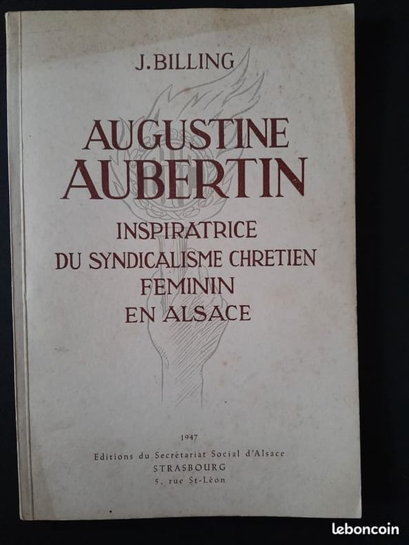 Augustine Aubertin naît le 19 février 1876 à Strasbourg, qui fait alors partie de l’Empire allemand. Eployée de magasin, elle rejoint en 1903 le Cercle des Demoiselles de Magasins, une organisation catholique à vocation sociale dirigée par Berthe Berret et inspirée de l’encyclique Rerum novarum. Elle joue au cours des années 1930 un rôle important dans le syndicalisme féminin, en encourageant la création de section féminines et en militant au sein des Écoles normales ouvrières. Elle devient en 1934 président de la nouvelle Fédération des syndicats chrétiens d’Alsace et fonde un journal commun aux syndicats féminins : Unir. Elle œuvre à ce poste à ouvrir des foyers pour travailleuses. Durant la guerre, elle poursuit ses efforts en Dordogne.
