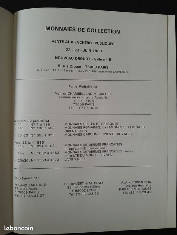 Paris : Nouveau Drouot, 1983, in-4, cartonné, couverture illustrée, 194 pages, iconographie en noir et blanc, description et estimation des pièces, index.