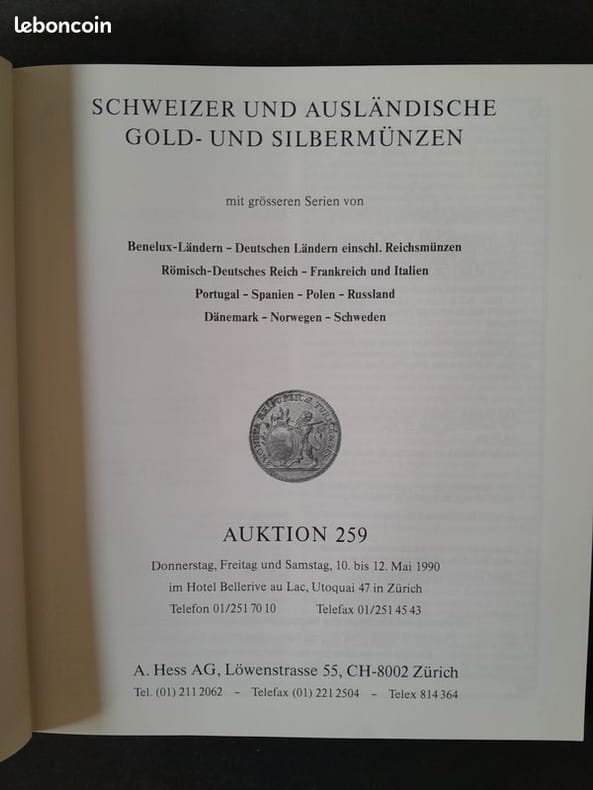 A. Hess AG, Zürich, 1990, petit in-4 carré, cartonnage d'éditeur, 327 p., 1722 lots la plupart illustrés en n/b.