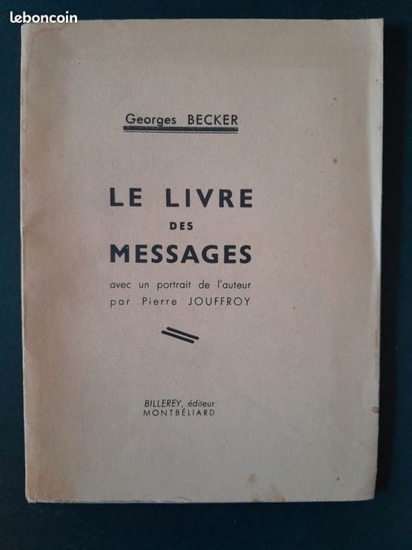 Montbéliard, Billerey, 1941, ouvrage broché (14.5 cm x 19.5 cm) couverture cartonnée, souple, rempliée, 70 pp., portrait en frontispice de l'auteur par Pierre JOUFFROY.