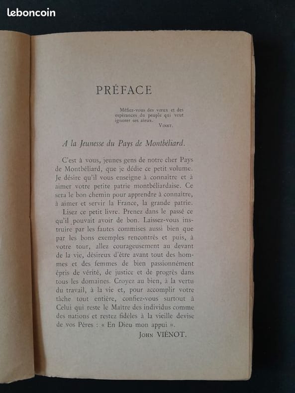 Pasteur luthérien originaire de Montbéliard, John Viénot (1859-1935) fut notamment bibliothécaire de la ville de Montbéliard, président de la Société d'Émulation de Montbéliard, professeur d'histoire à la Faculté de théologie protestante de Paris et président de la Société de l'histoire du Protestantisme français. John Viénot veut défendre et transmettre l’image du protestantisme français dans la société française, y compris parmi les protestants. C’est le sens de sa démarche d’historien qui étudie tour à tour les grandes étapes du protestantisme français du XVIe siècle au XVIIIe siècle et publie en conséquence : les débuts de la Réforme en France et à Montbéliard, les persécutions en France et en particulier à Paris tandis que Montbéliard s’organise autour de l’église luthérienne, (voir liste des publications ci-dessous). John Viénot voit dans le protestantisme une forme plus achevée de civilisation et regrette "qu'en France l'évolution du Protestantisme a été entravée et faussée par la persécution, tandis que dans le Pays de Montbéliard, la religion nouvelle a pu se développer et vivre avec plus de liberté" ; il insiste sur les conséquences heureuses de ce développement, puis se tournant vers "la belle et grande patrie française", il affirme que « bien des tristesses et des humiliations lui auraient été épargnées si, dès le XVIe siècle, elle avait pu être au bénéfice de la méthode protestante ». [Wikipédia]