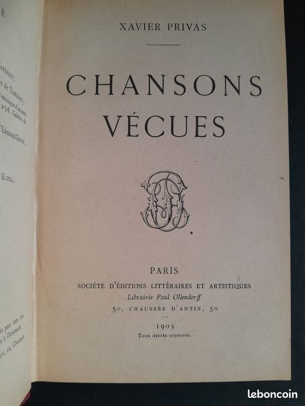 Paris Ollendorf 1903 In 12 demi reliure de basane bleue, couverture illustrée, 226 pages.Bel envoi de l'auteur au chansonnier Léon de Bercy. Papier jauni, un nerf arraché, sinon bon exemplaire.