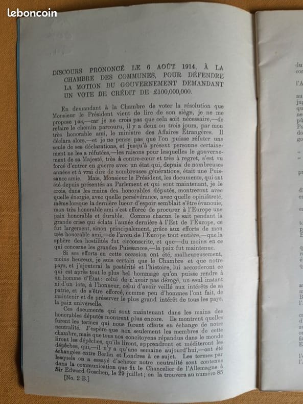Londres imprimé par Eyre and Spottiswoode 1914 39 pages in-8. 1914. agrafé. 39 pages. In-8 agrafé avec couverture illustrée 39 pages. Discours prononcé par le Premier Ministre d'Angleterre M.H.H. ASQUITH. Bon état. Envoi protégé entre deux cartonnages