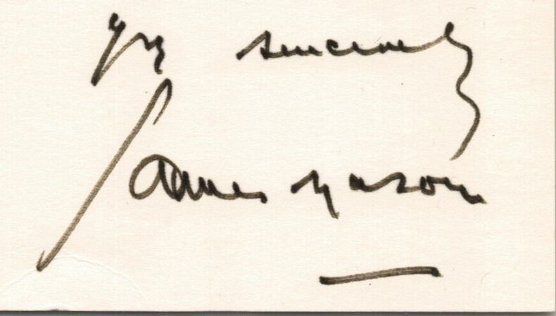 James Mason - LETTRE AUTOGRAPHE SIGNÉE À Claude Armand grand collectionneur Acteur Lettre autographe signée de James Mason acteur de cinéma britannique au collectionneur Claude Armand : "Dear Claude Armand, Thank you for your very nice letter ! I am certain that [...] Your sincerely James Mason" Dimensions : 15 x 10,5 cm État : Voir photos et description pour plus de détails. Nombre de pages : 1 Jason Mason James Mason est un acteur britannique, né le 15 mai 1909 à Huddersfield, dans le Yorkshire, et mort le 27 juillet 1984 à Lausanne en Suisse. Wikipédia Lettres autographes, vieux papiers, livres anciens, photographies, gravures, timbres... Nous expertisons et/ou rachetons dans toute la France vos lettres, collections de lettres et livres anciens.