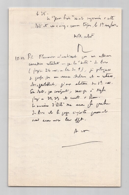 Roger Peyrefitte. Lettre autographe signée à Roger Nimier Écrivain français Lettre autographe signée de Roger Peyrefitte, adressée à Roger Nimier, datée du 14 décembre sans année. Rédigée à l'encre noire sur un feuillet de papier vélin filigrané à entête imprimée "15, Avenue Hoche, VIIIe CARNOT 26-29". Précieux témoignage de la collaboration entre deux figures majeures des Lettres françaises du XXe siècle. Peyrefitte, alors au sommet de sa notoriété, soumet ses « pages grecques » à Roger Nimier, chef de file des "Hussards" et alors influent conseiller éditorial ou journaliste. « Voici, cher Roger, dûment corrigées, mes pages grecques pour vos 800.000 lecteurs. [...] Pour plus de sureté, j'ai recopié la fin, qui été assez réussie. [...] » Dimensions : 13,4 x 21 cm État : Voir photos et description pour plus de détails. Nombre de pages : 2 pages