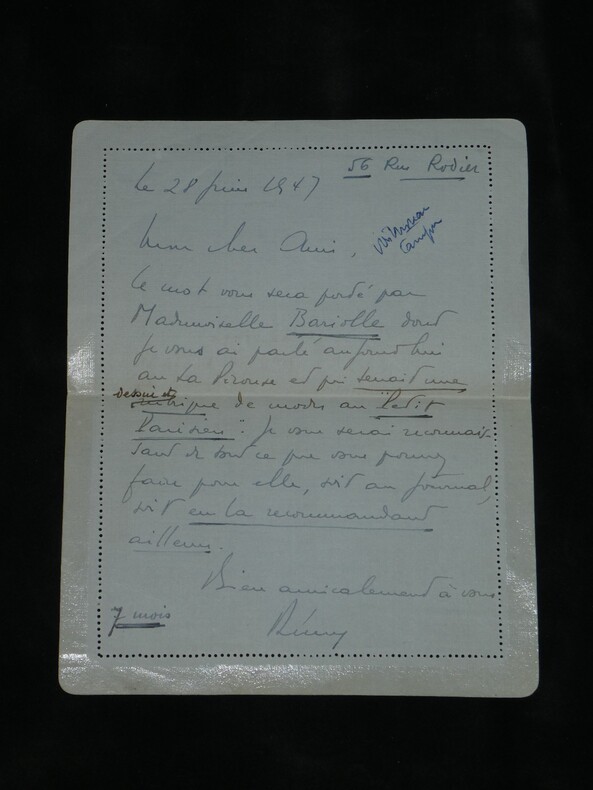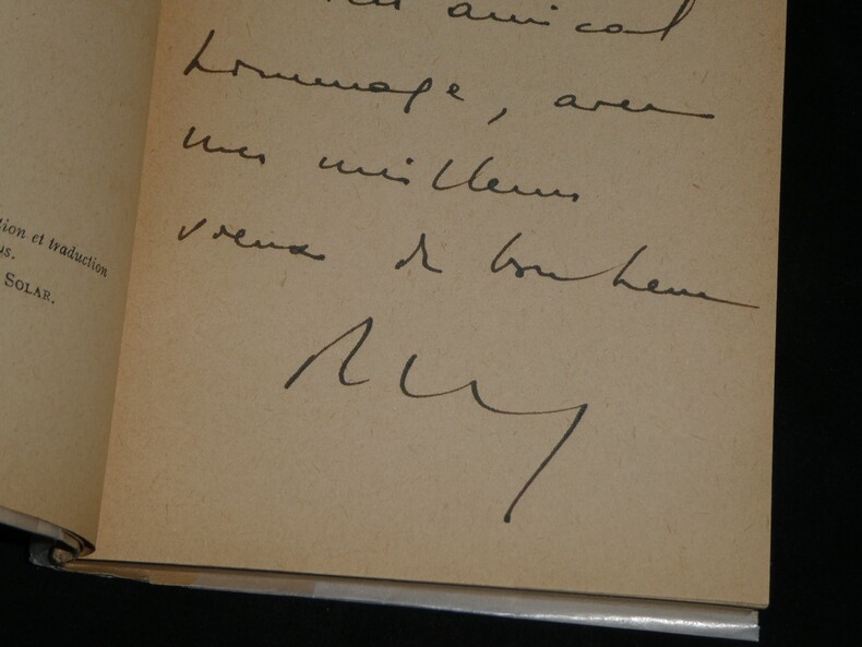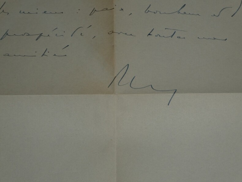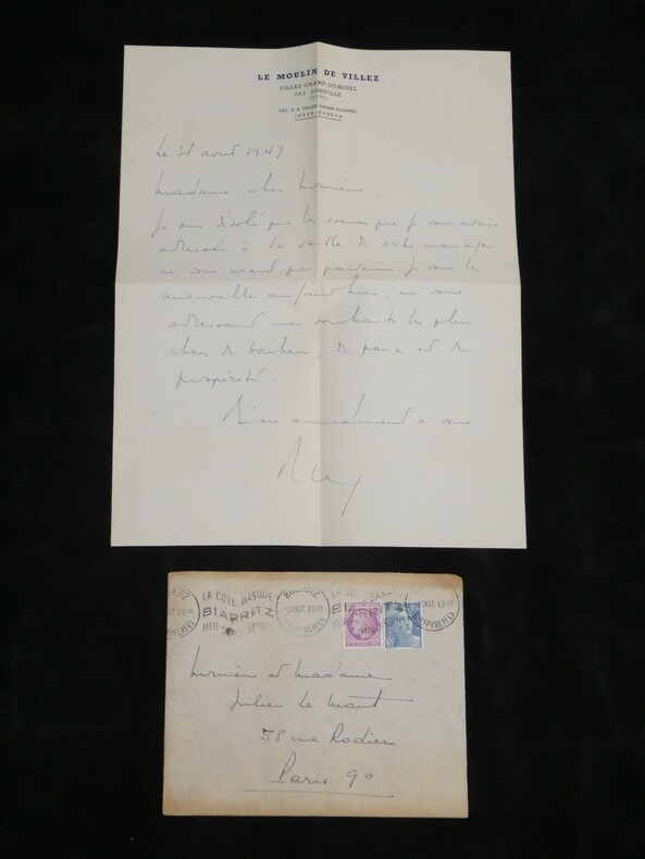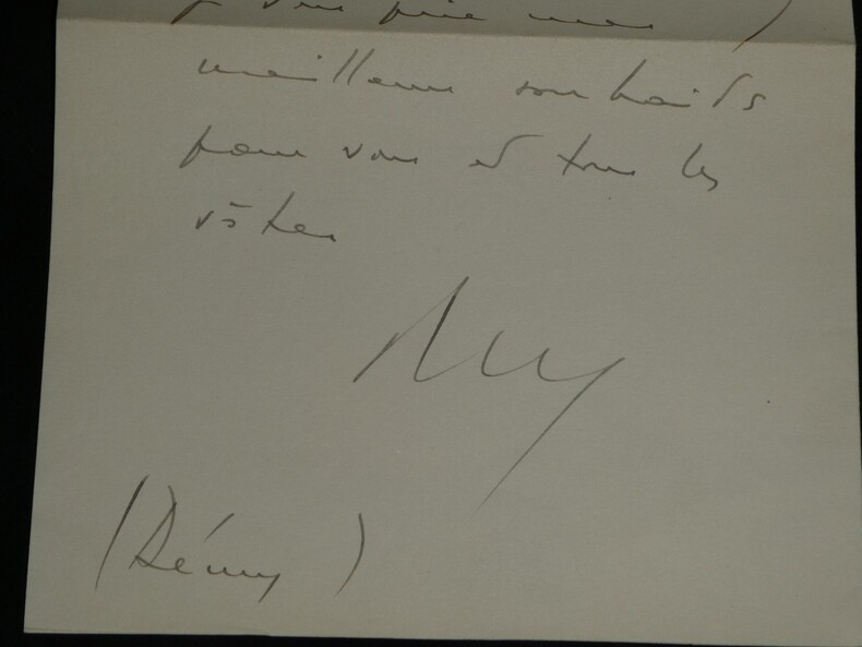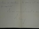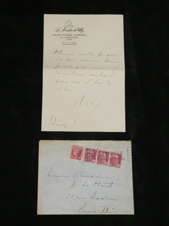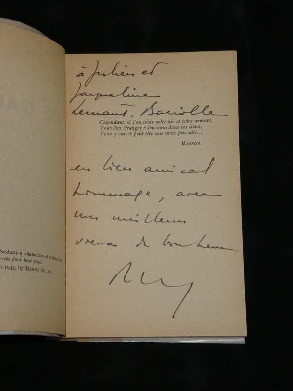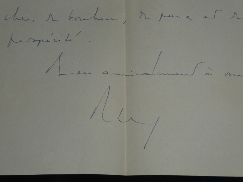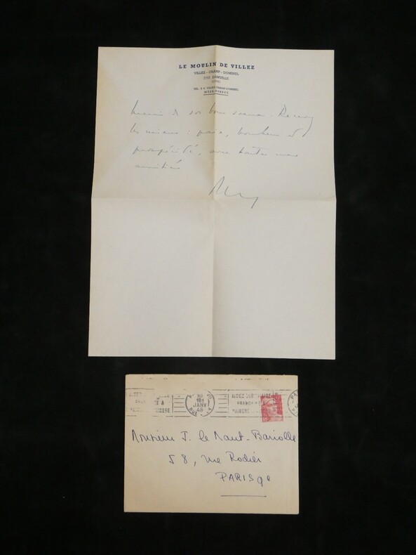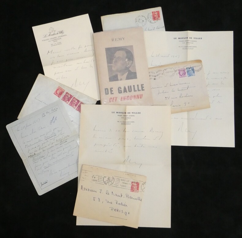 Colonel Rémy - Lot de 4 LAS + Livre "De Gaulle cet inconnu" dédicacé et signé Auteur et résistants français de la Seconde Guerre mondiale Ensemble de 4 lettres autographes signées du Colonel Rémy, avec son livre, "De Gaulle cet inconnu" , dédicacé et signé de sa main. "De Gaulle cet inconnu", exemplaire dédicacé et signé : « à Julien et Jacqueline Lemant-Bariolle en bien amical hommage, avec mes meilleurs vœux de bonheur » Dimensions : 18,6 x 11,8 cm État : Livre recouvert de papier transparent. Voir photos et description pour plus de détails. Nombre de pages : 126 pages