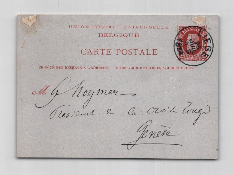 Émile de Laveleye - "Présider la conférence de la moralité publique" à Bâle, Suisse - Carte lettre autographe signée à Gustave Moynier - 1884 Économiste, politologue, historien et écrivain belge Carte lettre autographe signée d'Émile de Laveleye, adressée à Gustave Moynier, rédiger à l'encre noire sur une carte postale "Union postale universelle Belgique" avec timbre et tampon de la poste de Liège du 25 juillet 1884. "Je me rends à Bale en Aout pour présider la conférence de la moralité publique." et il demande à son correspondant si quelqu'un à Genève pouvait le renseigner sur le sujet. Dimensions : 13,5 x 20,8 cm État : Traces d'onglet au dos sinon bel état de conservation. Voir photos et description pour plus de détails. Nombre de pages : 1 page