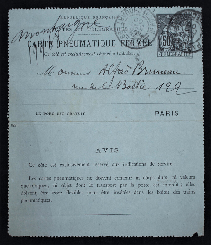 Lettre autographe signée de Gustave CHARPENTIER. Lettre élogieuse dans laquelle il complimente le talent musical de son ami. État: Voir photos pour plus de détails. Dimensions : 11,1 x 13,1 cm. 2 pages. Gustave Charpentier est un compositeur français, né à Dieuze le 25 juin 1860 et mort à Paris le 18 février 1956. Wikipédia