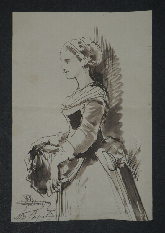 Claudius POPELIN. Dessin original signé, portrait de Marie de GALBOIS Peintre Dessin Original signé du monogramme "CP" entrelacé du nom M.GALBOIS pour Marie de GALBOIS, épouse du Général, elle même femme de chambre, confidente et secrétaire de la Princesse Mathilde nièce de Napoléon. Ajout d'une autre main M.POPELIN. Provenance Famille Général de Galbois. Dimensions : 15 x 10 cm État : Voir photos pour plus de détails. Nombre de pages : 1 page Claudius POPELIN Claudius Popelin, dit aussi Claudius Popelin-Ducarre, né le 2 novembre 1825 à Paris, où il est mort le 17 mai 1892, est un peintre, émailleur, poète et traducteur français. Wikipédia