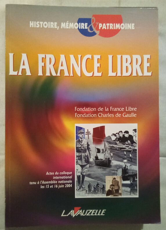 Histoire, Mémoire & Patrimoine–La France Libre. Actes du Colloque International–Assemblée Nationale, Paris–15 et 16 juin 2004. Charles Lavauzelle «Fondation de la France Libre-Fondation Charles de Gaulle»,2005. In-8 (21x15cm) broché couverture illustrée. 371pp.
