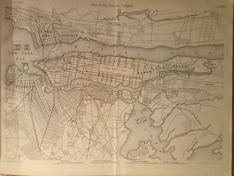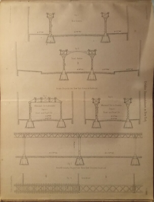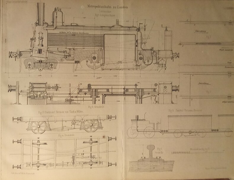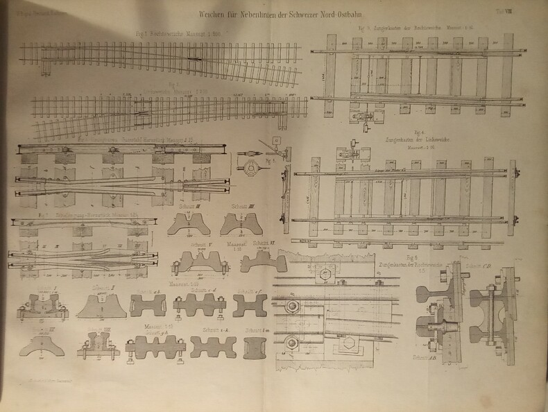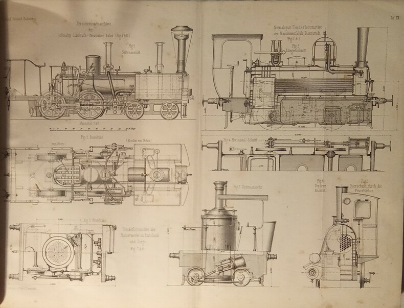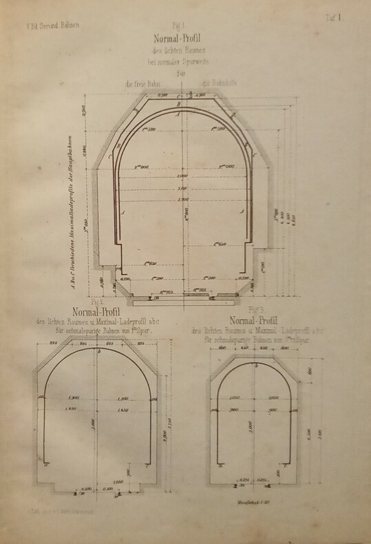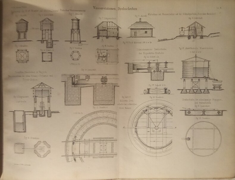 Un Atlas sur le Train qui va de la planche n°1 – Normal-Profil des lichten raumes bei normaler Spurweite für die freie Bahn die Bahnhöfe au n°99 – Skizze der Station bei der 110 Strasse. L'Atlas concerne des Gares, des Lignes, des Ponts, des Tunnels, des Trains, des villes comme: Schmalspurige Montanhahn Rostoken-Marksdorf (Voie étroite Montanhahn Rostoken-Marksdorf) – Schmalspur-Bahn Lausanne-Echallens – Eiserner Oberbau – Wasserstationen, Drehscheiben – Tenderlocomotive von Krauss & C°in Munchen – Der Schweizer Nord-Ostbahn – Locomotive nach System Grund – Tertiarbahnen – Erhöhte Strassenbahnen in New-York – Metropohtanbahn zu London – Plan von New-York und Umgegend, etc.