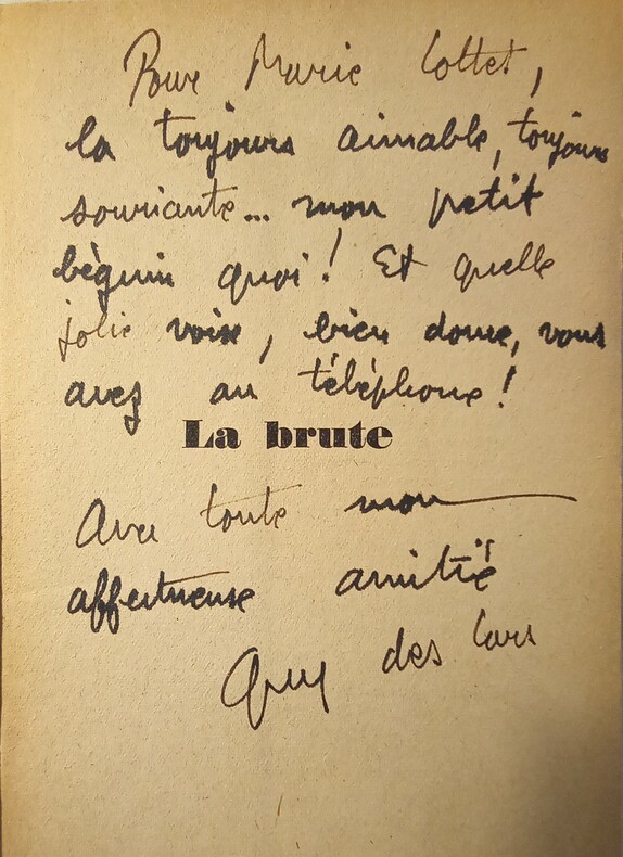 Édition originale sur papier ordinaire. Avec une dédicace de l'auteur à Mademoiselle Cottet, qui était la secrétaire de Montherlant.