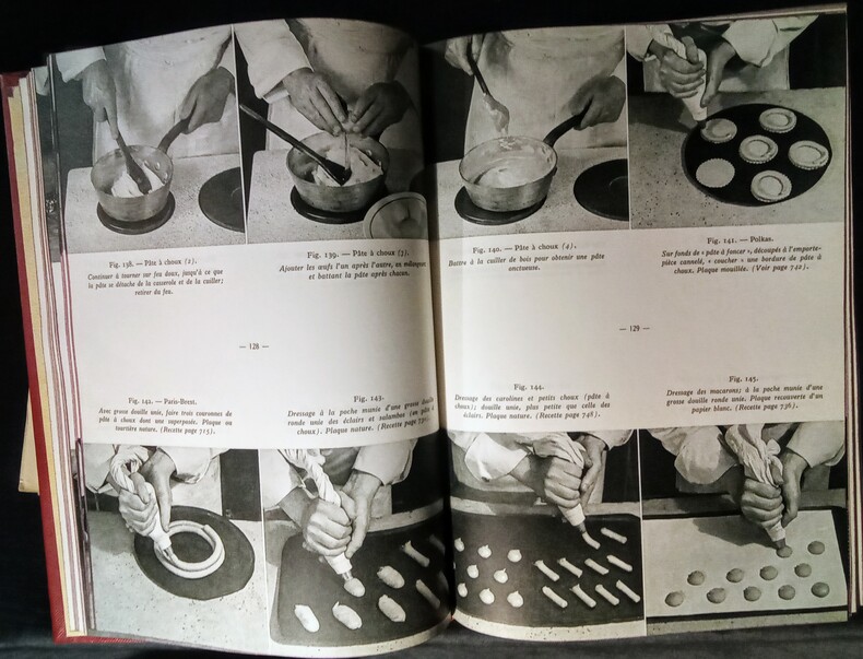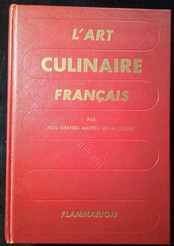 Les recettes de Cuisine – Pâtisserie – Conserves des Maîtres contemporains les plus réputés: Ali-Bab – E. Darenne – E. Duval – A. Escoffier – Ph. Gilbert – P. Montagné – H.-P. Pellaprat – Urbain-Dubois, etc. Cuisine Régionale – Cuisine Étrangère. 3760 Recettes et Conseils. 280 Gravures en Noir. 420 Sujets en Couleurs. Paris, Flammarion, 1971. In-4 (27x6x18cm) cartonnage éditeur avec légendes dorées, tranches noires. 1044pp.