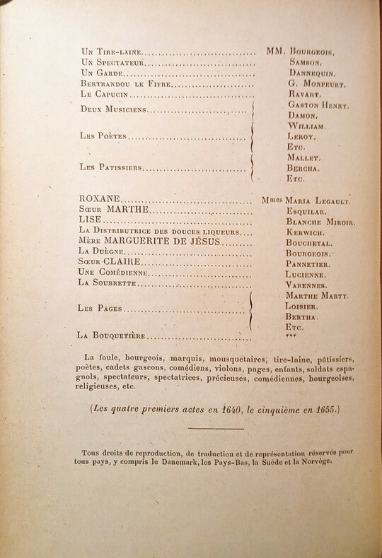 Édition originale du chef d'oeuvre de Rostand, une oeuvre la plus populaire du théâtre français de la fin du XIXè siècle. Belle reliure pour cette édition originale sur papier courant, couverture non conservée et reliure signée L.Guetant.