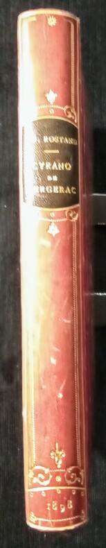 Comédie Héroïque en Cinq Actes en Vers. Représentée à Paris, sur le Théâtre de la Porte Saint-Martin, le 28 décembre 1897 – 21è mille. Paris, Librairie Charpentier et Fasquelle, Eugène Fasquelle, Éditeur, 11, rue de Grenelle, 11, 1898. In-8 (20x13,5cm) relié demi maroquin rouge, dos lisse orné de filets et fleurons dorés, titre, auteur dorés sur maroquin, et date dorée en queue, plats de papier marbré, gardes et contreplats de papier à la cuve, tête dorée. (1)f, Faux-titre, titre, 225pp.