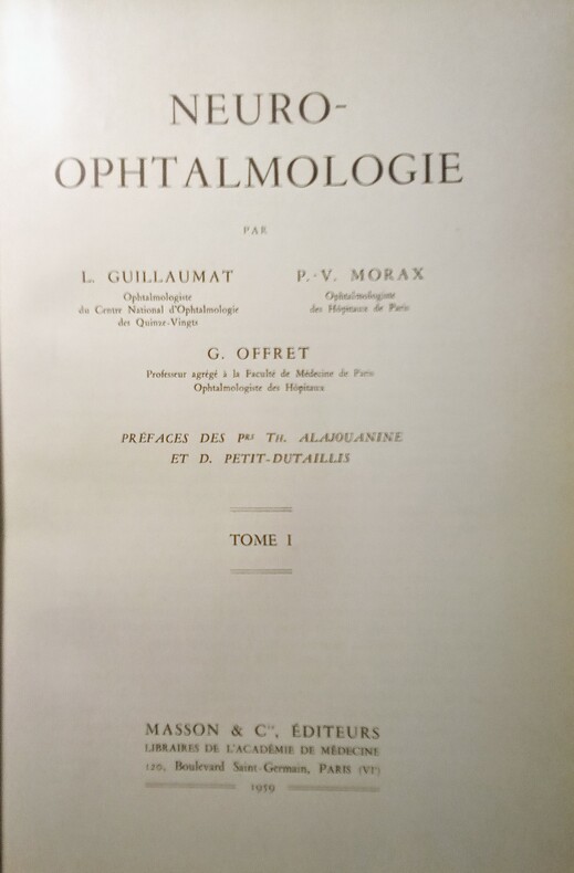 Préfaces par Th. Alajouanine et D. Petit-Dutaillis. Classification Dewey : 617.7-Ophtalmologie