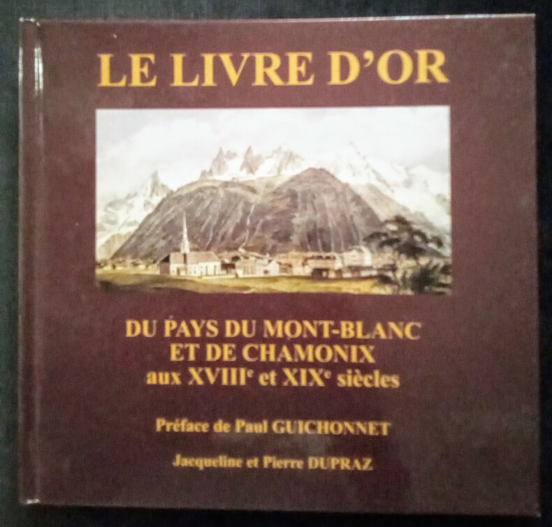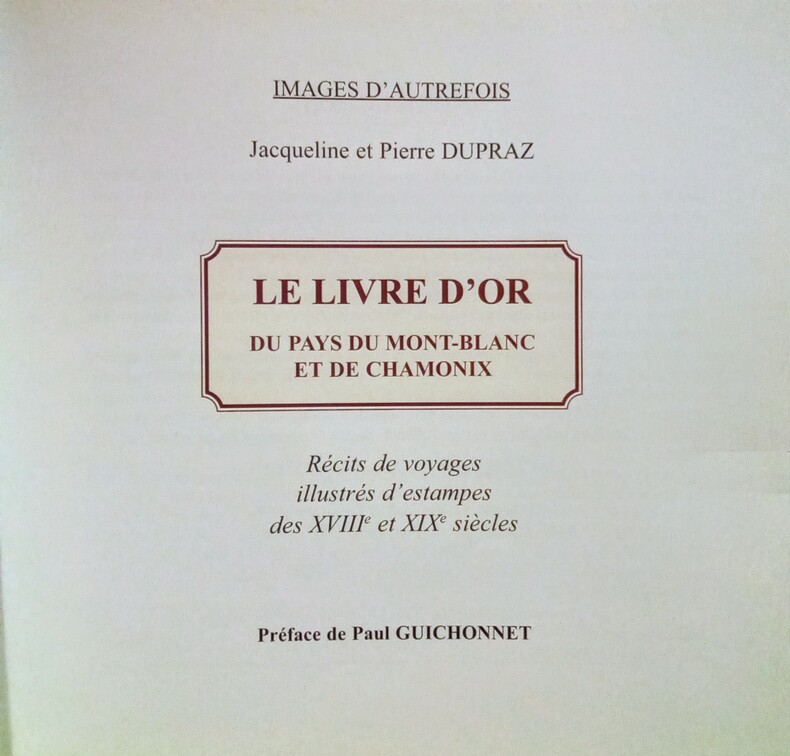 Images d'autrefois – Livre D' Or du Pays du Mont-Blanc et de Chamonix. Récits de voyages illustrés d'estampes des XVIIIè et XIXè siècles. Préface de Paul Guichonnet. Aoste, Imprimerie Valdôtaine, 2002. In-8 (23x24 cm) cartonnage éditeur bordeaux orné d'une vignette en couleurs et légendes en jaune. 155pp.