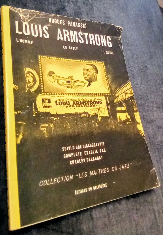 Éditions du Belvédère, 1947. In-8 br. Coll. " Les Maîtres du Jazz ". Rare jaquette illustrée restaurée conservée. Biographie de L. Armstrong suivie d'une discographie complète établie par Charles Delaunay. 9 planches hors texte. E.O. Dédicaces autographes de Louis Armstrong et Hugues Panassié.