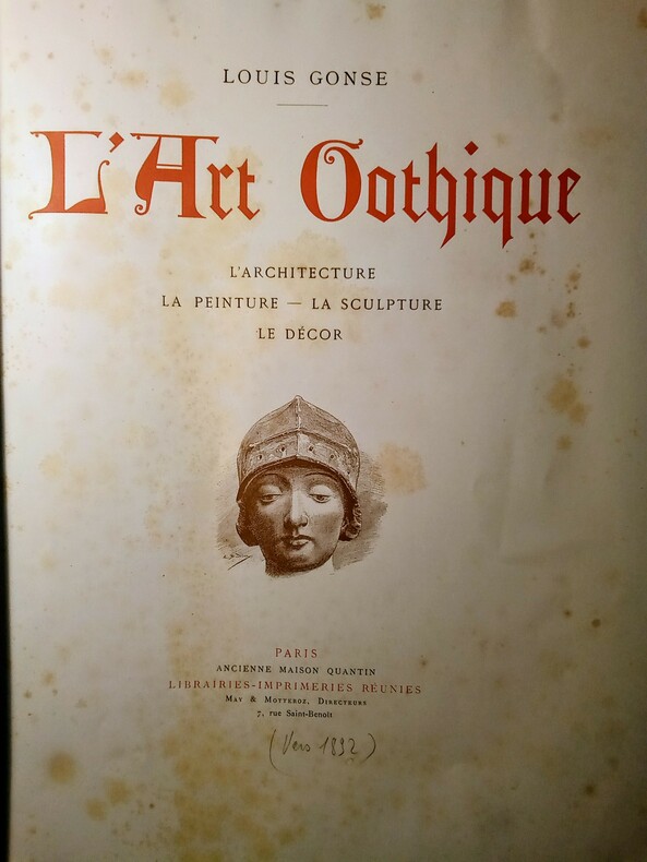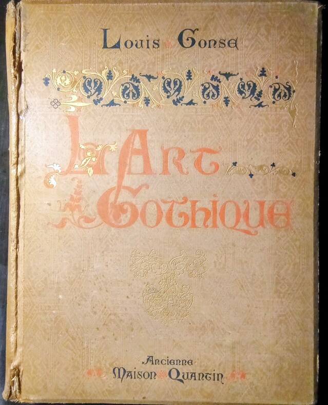L'Architecture – La Peinture – La Sculpture – Le Décor. Ouvrage orné de 28 planches hors-texte (manque ici la planche la Façade de Notre-Dame de Paris, page 176), quelques planches en couleurs et de nombreuses gravures dans le texte. Paris, Ancienne Maison Quantin, Librairie-Impriméries Réunis, sans date (1892 vers la fin). In-folio (41,5x5,5x32cm) cartonnage éditeur beige orné, dos lisse, coiffes et charnières faibles avec fentes. IV,476pp. .