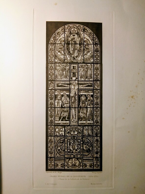 10 lavis sur beau vélin à lavis Canson & Montgolfier au format, 49,5 X 29 cm, datés de 1906-1907, numérotés 96, 94, 88, 82, 95, 97, 100, 81, 89, 83 (partie d'une série de lavis originaux), signée J. Bonnet.Rappel de la liste des oeuvres : Eléments de l'art gothique. Fenêtre à lancette. Triforium et clérestory de Notre-Dame d'Amiens - Fenêtres flamboyantes. Eglise Saint-Ouen de Rouen. Claire-voie continuant les fenêtres supérieures - Fenêtre rayonnante. Sainte-Chapelle de Paris - Eléments de l'art ogival. Théorie de l'arc-boutant - Rose rayonnante XIVe siècle - Art gothique. Eléments du style ogival tertiaire (XVIe siècle) - Art gothique. Tombeau de François II et de Marguerite de Foix par Michel Colombe. - Eléments du Style ogival : Contreforts et arcs-boutants. Coupe de la Cathédrale de Bourges - Piliers et Colonnes gothiques (Types) - Les Voûtes. Voûte ogivale cupoliforme, domicale ou Plantagenêt